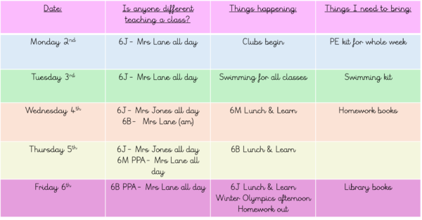 Please find below everything that is happening in year 6 next week. It’s a busy one!