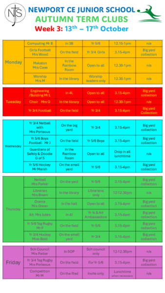 *If they are attending a club this term so they are aware.